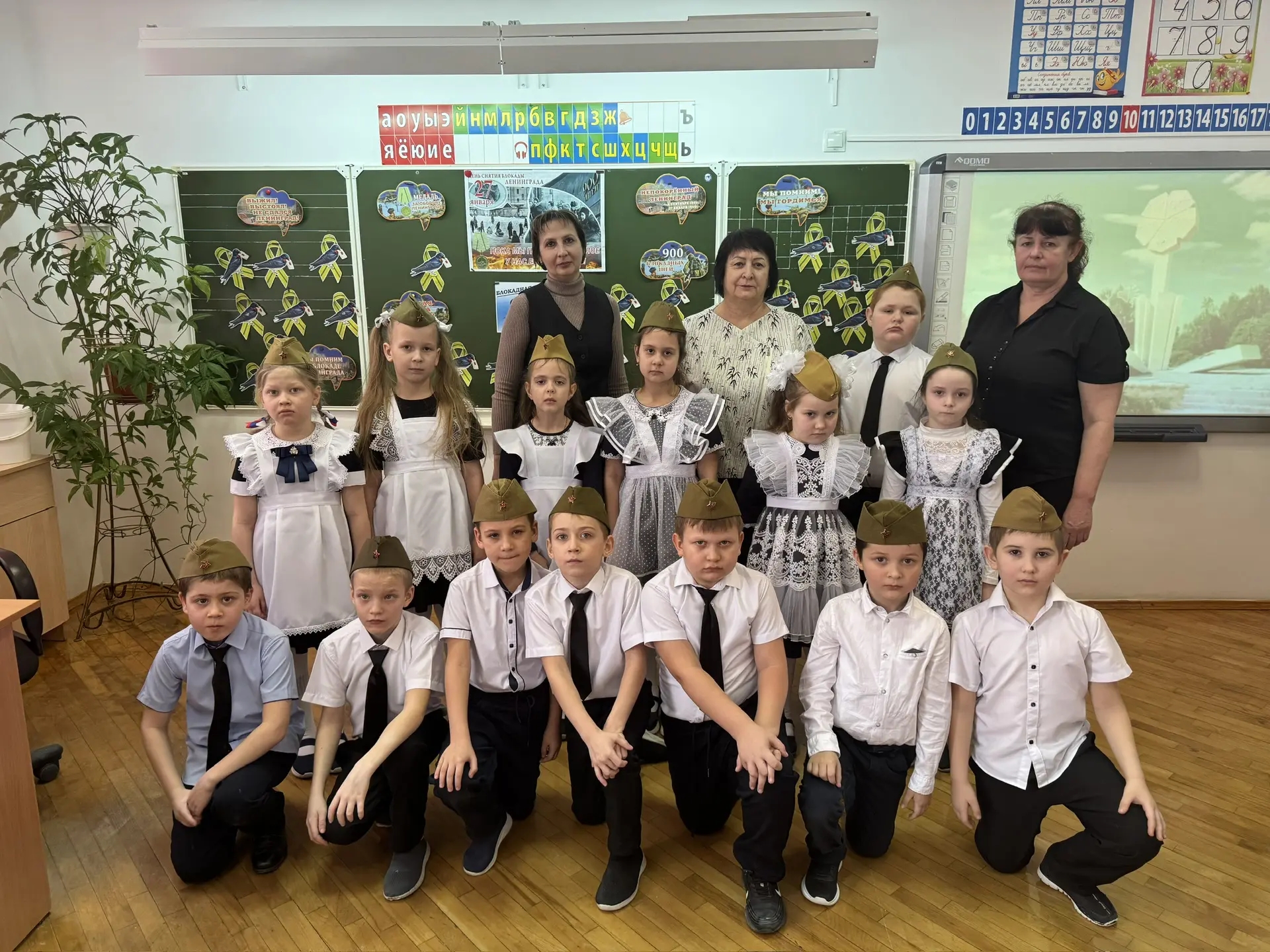 В рамках месячника военно- патриотической и оборонно - массовой работы в 1 «А» и 1 «В» классе проведен урок мужества «Непокоренный Ленинград», посвященный 82- годовщине полного освобождения Ленинграда от фашисткой блокады. Ребята узнали о тяжелых днях блокадного Ленинграда, о мужестве и стойкости его жителей. В память о тех событиях изготовили поделки в виде ласточек. Ознакомились с символами блокадного Ленинграда- « Блокадный хлеб» , « Дорога жизни». Читали стихи. Почтили память жертв блокады минутой молчания. Ефремова Соня со своей мамой Ефремовой Татьяной Васильевна исполнили песню «День Ленинградской победы».Урок подготовили и провели Кодралеева Татьяна Юрьевна и Зеленькова Светлана Алексеевна при участии педагога - библиотекаря Короленко Юлии Андреевны.